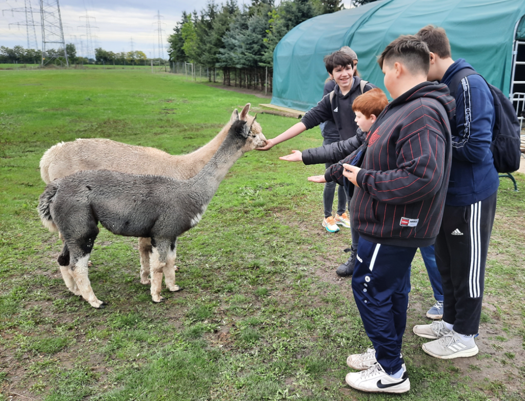 Dieses Jahr fuhren wir mit dem Zug nach Trautmannsdorf. Dort besuchten wir einen Alpakahof, wo wir einiges Wissenswertes über Alpakas erfuhren und diese auch füttern durften.